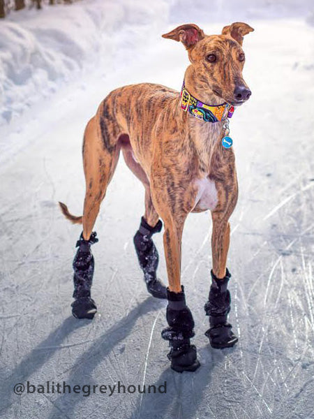 Our slipper syle is easy to slide on over your dog's paws and long enough to pull up and over the lower leg area for extra coverage.