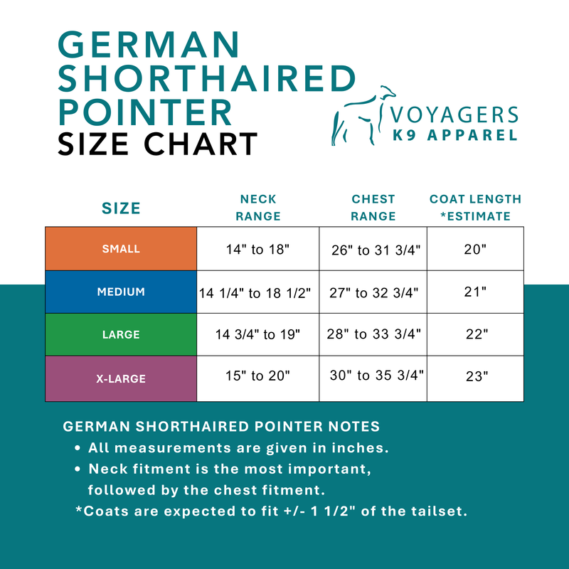 Your GSP loves to point you in the right direction. They are always ready to move and play outdoors. These smart and friendly pups want to join you on your next adventure, so keep them protected from the elements in Voyagers K9 Apparel.